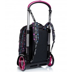 Con la stampa MAYLAR sfumata e il logo glitterato dal look stiloso e sempre alla moda, ecco il nuovissimo Trolley Tyre Seven. È multiuso: in poche semplici mosse da trolley diventa zaino e viceversa. Il carrello ha fondo rinforzato e protezioni angolari per la massima protezione del contenuto e lo puoi sganciare per quando vuoi utilizzarlo come uno zaino, è lavabile, maxi capiente, comodo da indossare grazie a schienale e spallacci imbottiti. Da trolley invece puoi far scomparire gli spallacci o no. Tanto grazie al CROSSOVER SYSTEM quando sollevi la resistentissima doppia barra telescopica con doppia regolazione in altezza, automaticamente si sollevano anche gli spallacci che in questo modo non strisciano per terra. Infine con la maxi barra e le maxi ruote da 17 cm con Trolley Tyre Adventure Camo affronterai facilmente qualunque percorso.